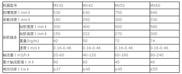 MX型埋刮板輸送機工程上亦稱高效型埋刮板輸送機可用于化工、水泥、輕工、糧食、食品等部門水平式傾斜輸送粉料和小顆粒物料。 MX系列大運量埋刮板輸送機是針對不同的運輸條件而設計的,它效率高,功耗省,燥音低,傾斜布置時最大傾角可達30度.本系列刮板輸送機共有4種機型,最大輸送量可達240m3/h,最大輸送距離可達80m。MX系列刮板輸送機應用范圍