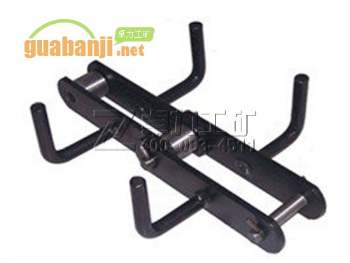 刮板牽引鏈的鏈條是用18*64的圓環焊接而成,為了適應調整牽引鏈長度的需要,還備有3、5、7、9、11環等不同長度的調節鏈。