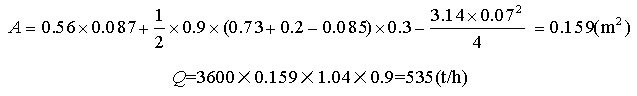 當給定工作面刮板輸送機的生產能力,驗算溜槽最大物料斷面面積A':