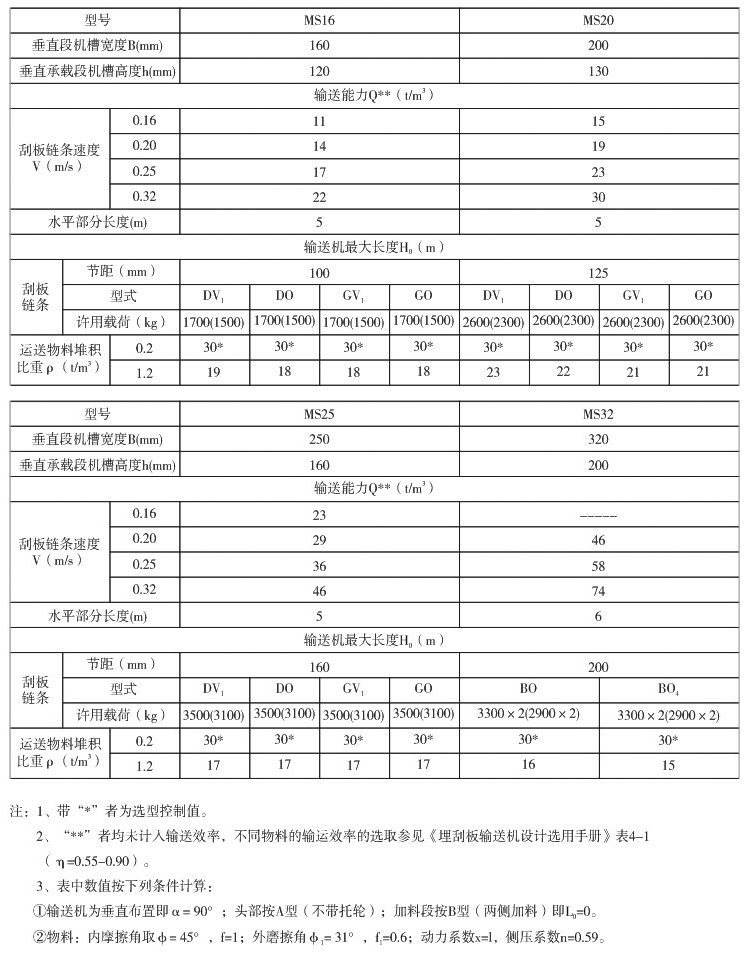 ·本系列埋刮板輸送機不宜輸送下列物料:堆積密度較高(> l.2t/m3)的磨琢性大、粘結性強的物料;工藝上不允許有破損性的易碎物料;腐蝕性極強的物料:流動性極好的物料;高溫或易燃 易爆等物料。