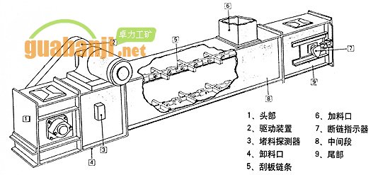埋刮板輸送機在封閉的矩形斷面的殼體內(nèi),借助于運動著的刮板鏈條連續(xù)輸送散狀物科的運輸設(shè)備。